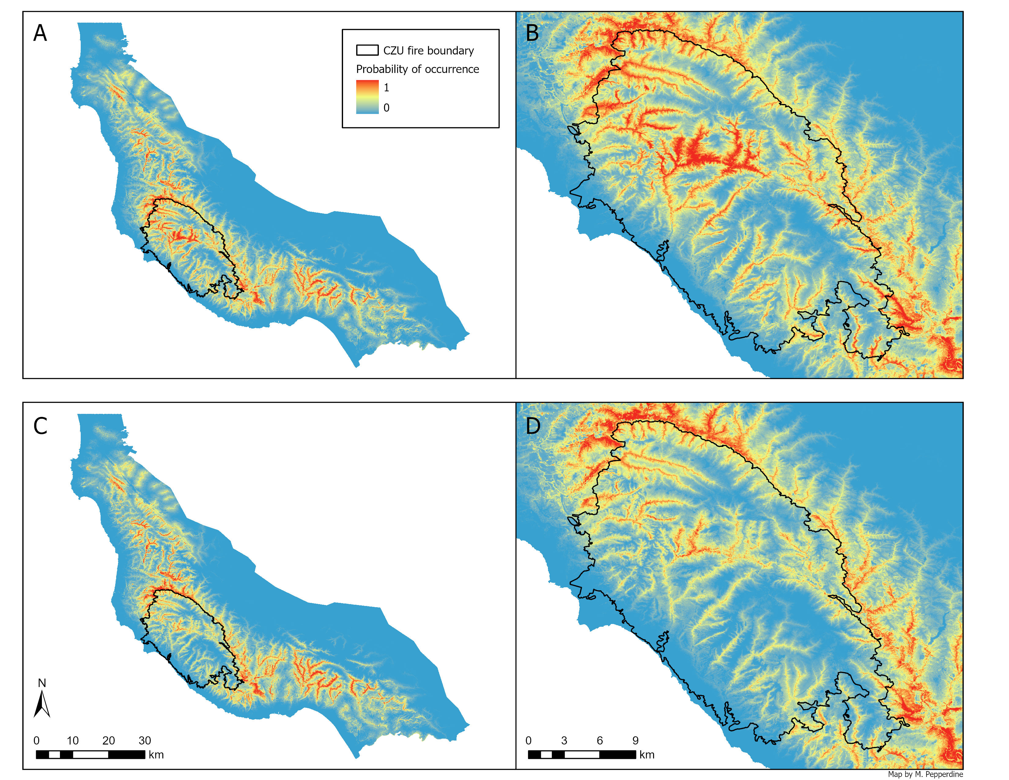 A spatial analysis delineating suitable marbled murrelet nesting habitat in the Santa Cruz Mountains (SCM) following high-severity wildfires